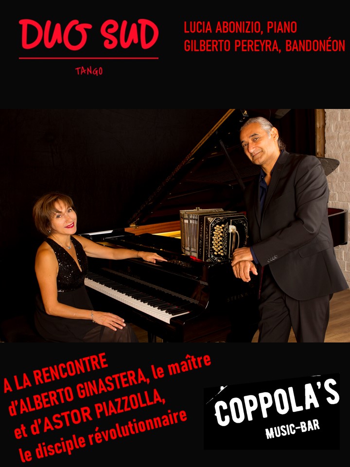 JEUDI 8 SEPTEMBRE 2022- Entre 18H30 et 21H30. Trois sets – COPPOLA’S MUSIC-BAR – ENTRÉE LIBRE « A LA RENCONTRE d’ALBERTO GINASTERA, le maître mentor et d’ASTOR PIAZZOLLA, le disciple révolutionnaire » 7, RUE D’ENGHIN – 75010 PARIS