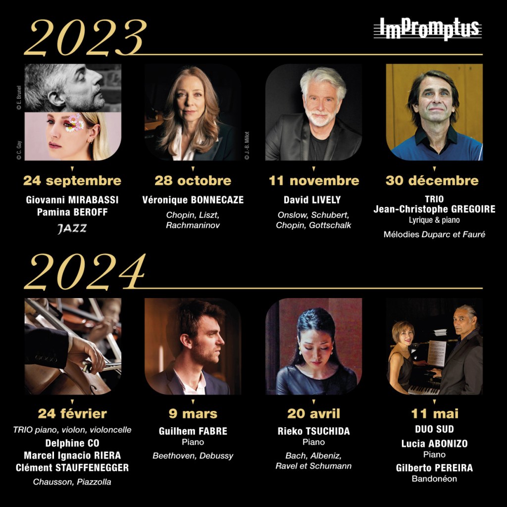 2021-2022: Calendrier Monumental Tango avec Gilberto Pereyra au bandonéon, Gilles San Juan, chant et Lucia Abonizio, piano https://monumentaltango.org/concerts-2/